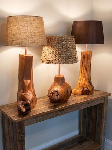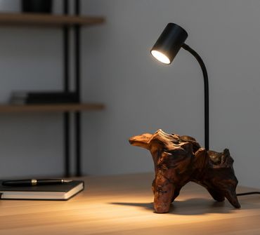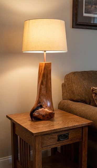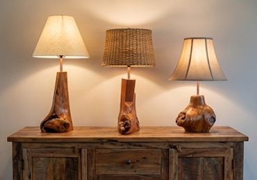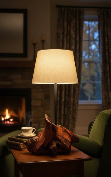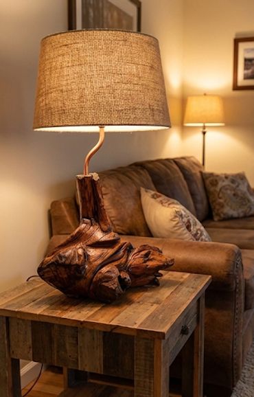 Illuminated history. These bases utilize the deep hollows and "fire-etched" curves of the ancient Larch to create a dramatic interplay of light and shadow. Each piece is a one-of-a-kind sentinel for your desk or living space.